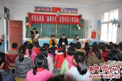 1月10日上午,團(tuán)開(kāi)發(fā)區(qū)委聯(lián)合河南驛展科技有限公司團(tuán)支部在關(guān)王廟鄉(xiāng)何莊小學(xué)開(kāi)展“溫暖冬天”活動(dòng)。