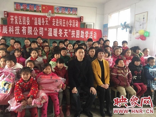 1月10日上午,團(tuán)開(kāi)發(fā)區(qū)委聯(lián)合河南驛展科技有限公司團(tuán)支部在關(guān)王廟鄉(xiāng)何莊小學(xué)開(kāi)展“溫暖冬天”活動(dòng)。